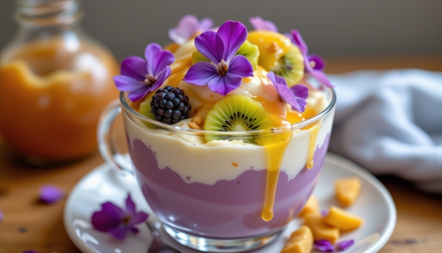 • Beverage & Dairy Innovation: Perfect for creating “Instagrammable” purple lattes, artisanal bubble teas, and plant-based milks. It offers excellent solubility and remains stable in both dairy and non-dairy protein bases.